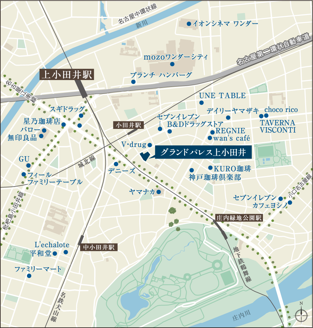 イオンスタイルと200店以上の専門店からなる本棟、イオンシネマなどがあるシネマ棟、スポーツクラブなどが入るスポーツ棟で構成され、延床面積が約244,000㎡で東海三県のイオンモールで最大の面積※を誇る「mozoワンダーシティ」へ徒歩10分。ショッピングからアミューズメントまで揃い暮らしを彩ります。